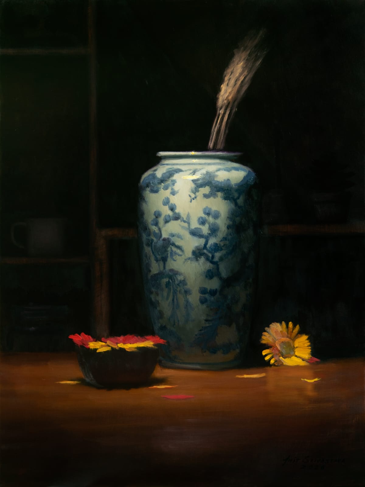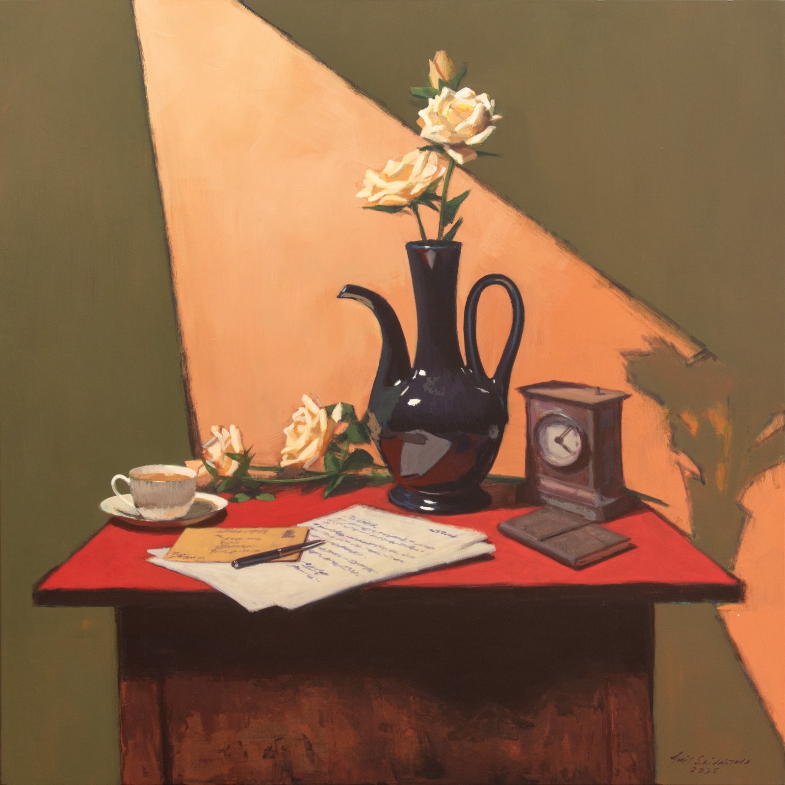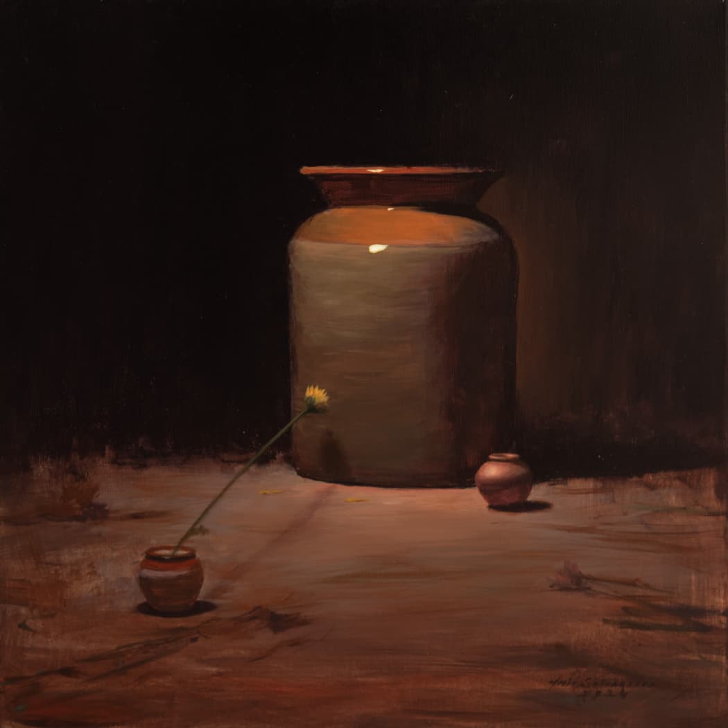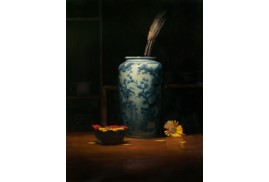 Each of his works seems to carry a story, or at least suggests one for the viewer to complete. Thus, his still-lifes, though suspended, remain full of life. They encourage a lingering gaze—where intimacy is immediate, yet it opens into a more meditative space where time loosens its hold, remaining subtly in motion.
